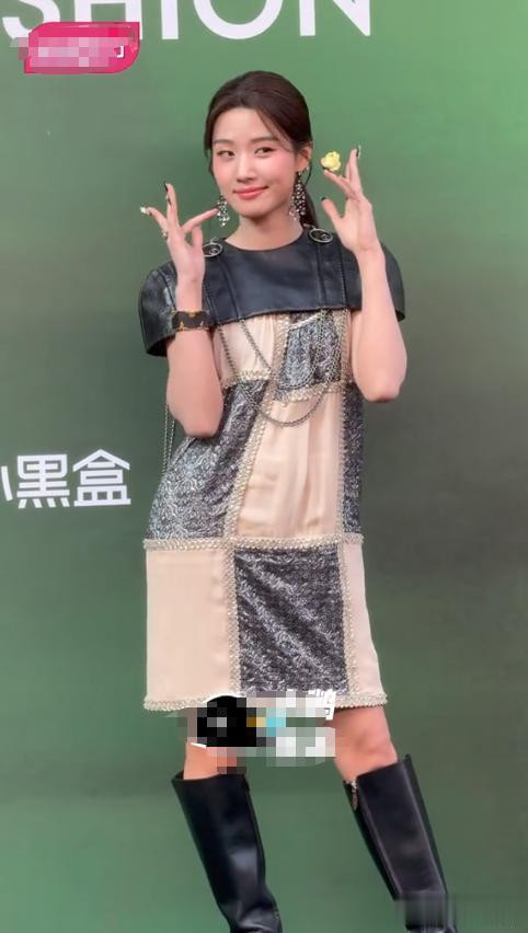 而黑色超短裙、胸前点缀了立体的半瓣花朵,脚上搭了一个红色厚底高跟鞋,很土和落后。