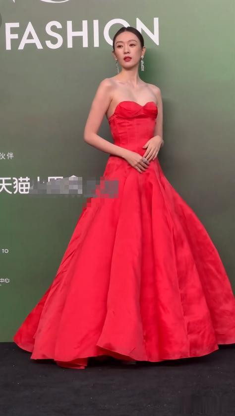 别人都是暗淡的颜色,童瑶穿了红艳艳的抹胸裙,很是亮眼啊。