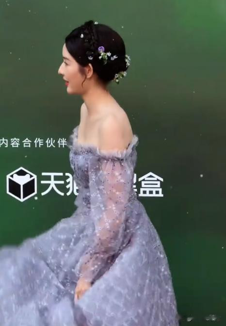 穿着紫色一字肩裙子、花环发型的王玉雯,更像一枚小公主。