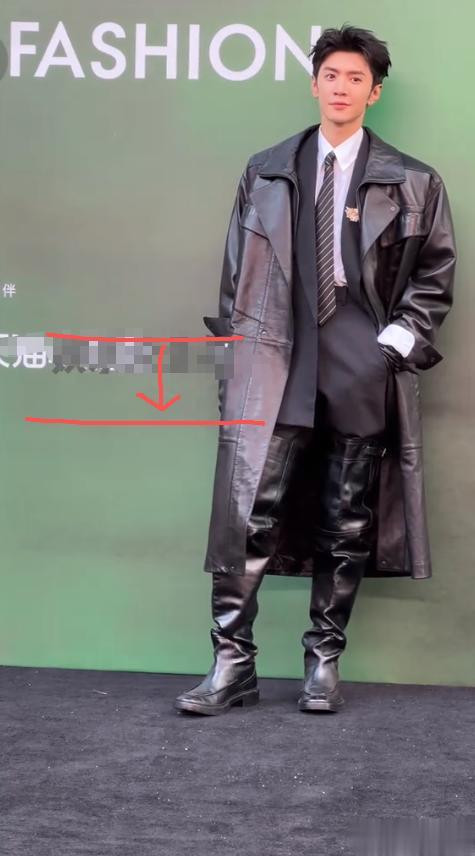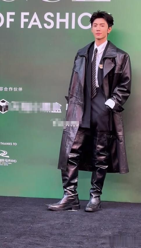 西装+长款皮衣,就已经很酷了,而造型师又给他增加了一个高筒靴。