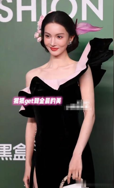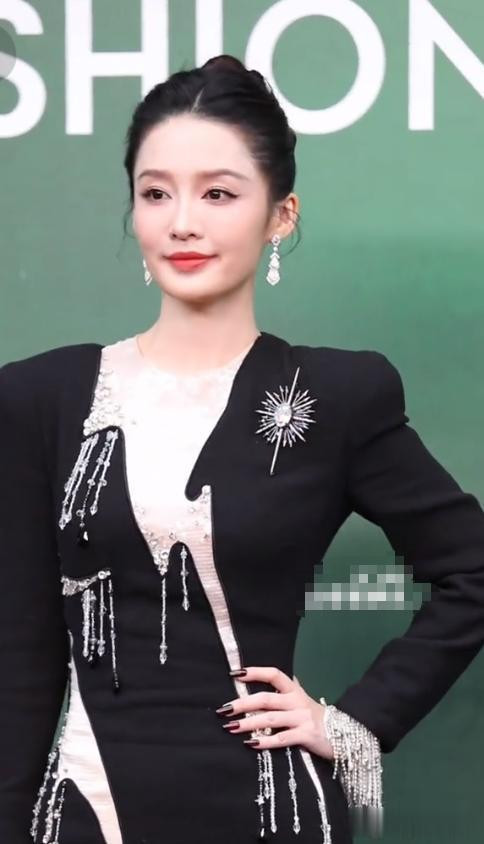 李沁一身黑色刺绣长裙,虽然有些黑,但身材是真不错。