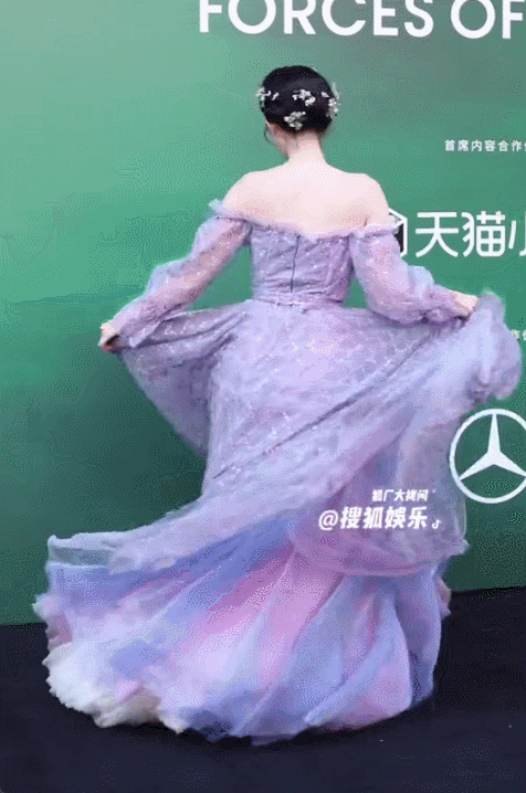 上台前和红毯上拍照时,杨幂一直在拽裙边,但架不住太短了,都是无用功。