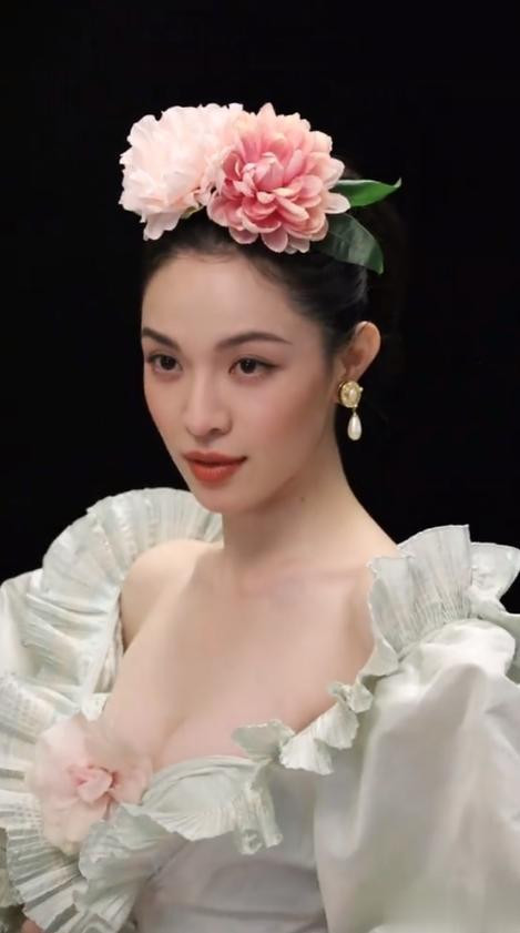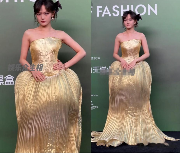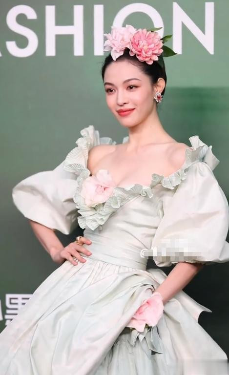 主题是花,但文淇却穿着像“八爪鱼”的抹胸裙。