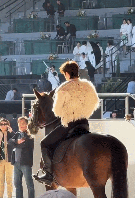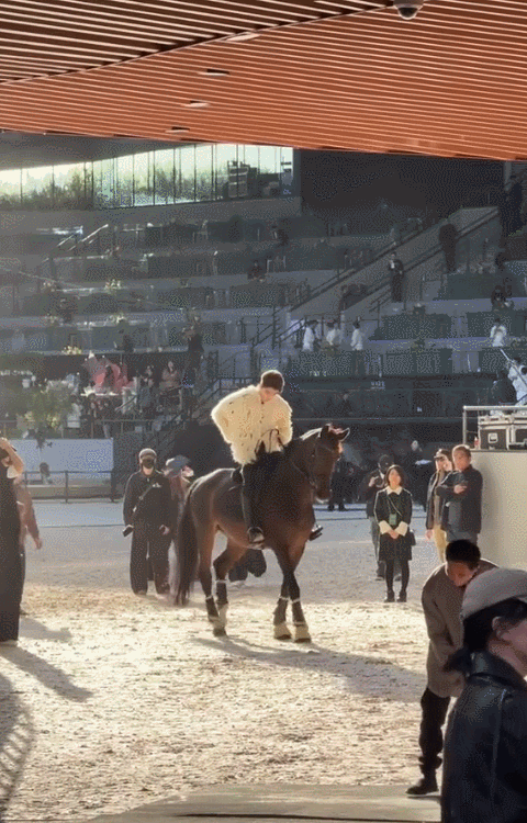 别人都在走红毯,而他在训练马,要以不一样的方式,跟大家见面。