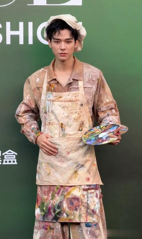 而且金黄色的眼影、淡红的口红,导致他的五官都变形了,有点认不出了。