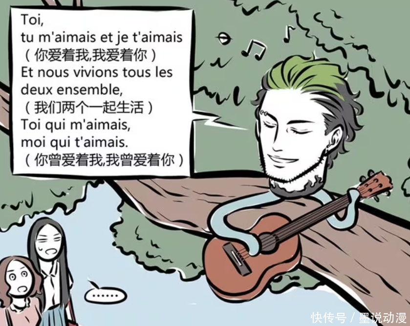 此时汤姆不仅唱歌,还弹着吉他。不得不说汤姆是多才多艺,而且还懂法语。抛开外形来说,汤姆是个很浪漫的绅士。可是人类女孩见到汤姆,未必能够接受。